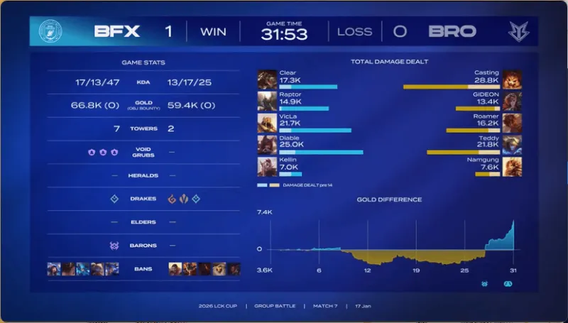 虎扑01月17日讯 【GAME1】BFX蓝色方,BRO红色方