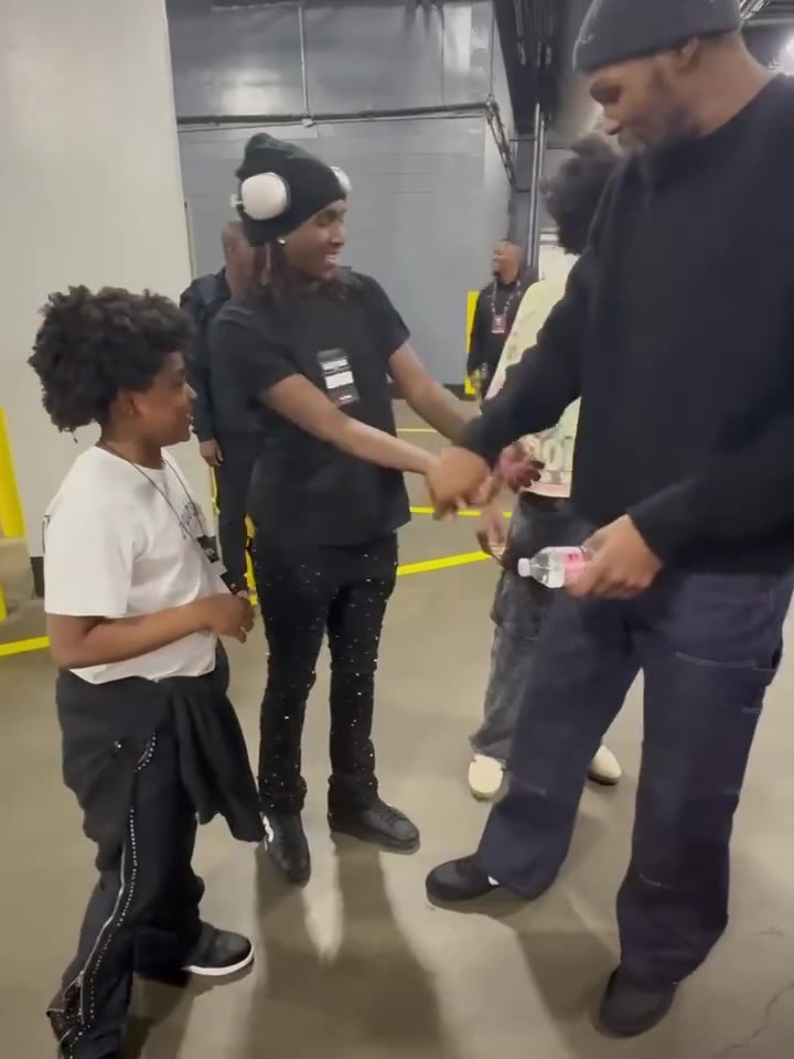 1月17日讯 帕金斯更新社媒,晒出了他的妻儿去看火箭比赛,并在后台和杜兰特寒暄的照片。